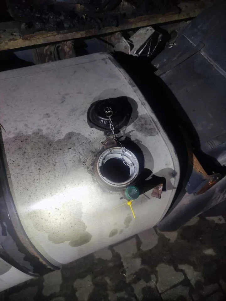 Nocna interwencja zaczęła się od telefonu świadka, który na firmowym placu w gminie Stawiguda zobaczył mężczyznę poruszającego się między zaparkowanymi ciężarówkami i ciągnikami - miał się skradać i ukrywać za pojazdami. Policjanci, którzy jako pierwsi dotarli na miejsce, stwierdzili uszkodzone wlewy paliwa, poustawiane kanistry i gumowy wężyk przy pojazdach.