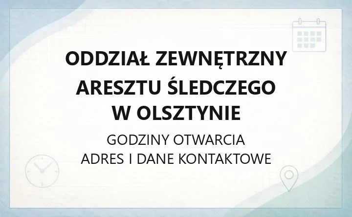 Oddział Zewnętrzny Aresztu Śledczego w Olsztynie działa przy ul. Opolskiej 42. To wyodrębniona organizacyjnie część większej jednostki penitencjarnej, funkcjonująca w osobnej lokalizacji. Jeśli chcesz zgłosić sprawę dotyczącą osadzonego albo ustalić, gdzie kierować korespondencję, najważniejsze dane znajdziesz poniżej.