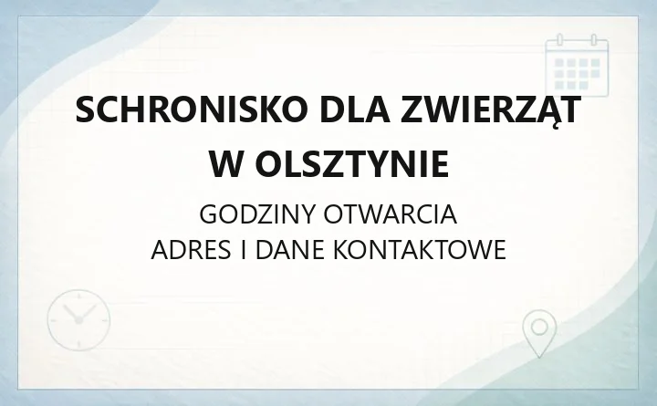 Schronisko dla Zwierząt w Olsztynie mieści się przy ul. Turystycznej 2 i pomaga psom oraz kotom, które zostały porzucone albo straciły opiekuna. To miejsce, w którym można zgłosić pilną sprawę związaną ze zwierzęciem, uzyskać informacje dotyczące adopcji oraz odwiedzić zwierzęta w godzinach dla osób odwiedzających. Schronisko prowadzi także adopcje tymczasowe i obsługuje interwencje.