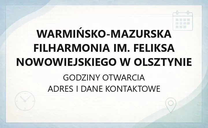 Materiały źródłowe pochodziły ze strony filharmonia.olsztyn.pl. Dane mogą się zmieniać — dla pewności warto sprawdzić szczegóły na oficjalnej stronie instytucji.