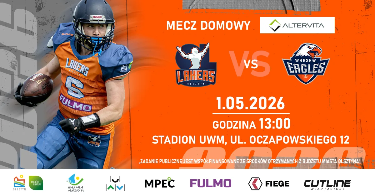 Majówka w Kortowie zapowiada się naprawdę głośno — 1 maja na Stadionie UWM zobaczymy mecz futbolu amerykańskiego AZS UWM Olsztyn Lakers z aktualnym mistrzem Polski, Warsaw Eagles. Będzie sportowa walka, porządny doping i kilka nietypowych atrakcji przy trybunach, więc warto zarezerwować sobie ten popołudniowy termin i wpaść na stadion